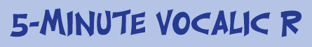 A welcome addition to the family of the previous 5-Minute⢠Therapy books, this NEW, UNIQUE, stand-alone book follows the same format as the first six books with 5-minute drill lists and activities for producing VOCALIC /R/ words. Targeted sounds include /AR/, /ER/, /OR/, /AIR/, /OUR/, /IRE/, /EAR/ and recurring vocalic /R/. This activity book includes: